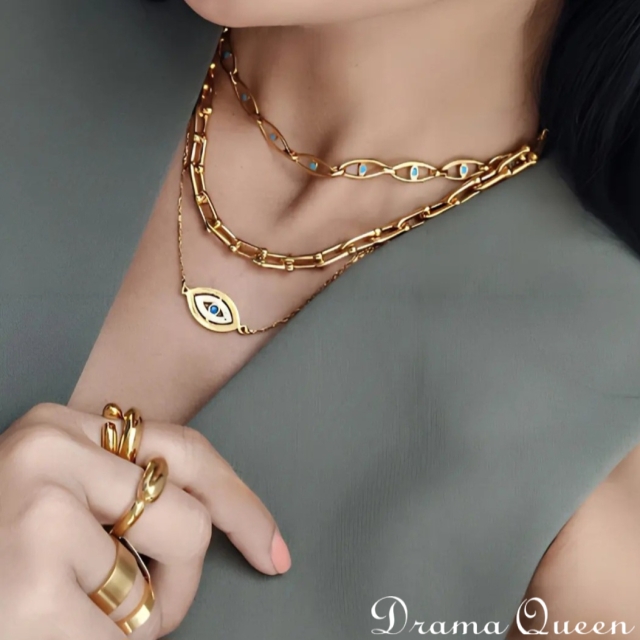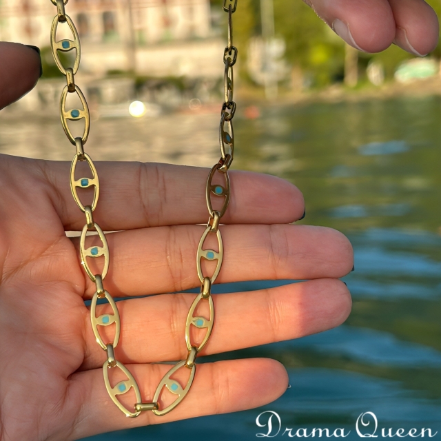 Mykonos Necklace, adorned with eye motifs add a touch of sophissication and mystical charm for everyday wear.