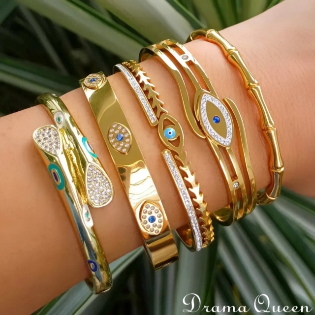 Rock the latest trend with our Santorini Bangle. The fashionable Evil Eye charms not only look fabulous but also protect you from negative vibes.